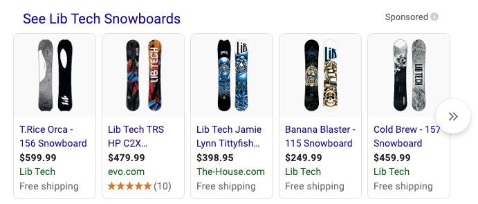 Quảng cáo mua sắm hiển thị quảng cáo sản phẩm từ các doanh nghiệp sử dụng Google Shopping, còn được gọi là Quảng cáo danh sách sản phẩm (PLA). Mặc dù không phải là một tính năng hữu ích của SERP, nhưng chúng ảnh hưởng đến trang kết quả tìm kiếm vì vị trí và hiển thị của chúng.