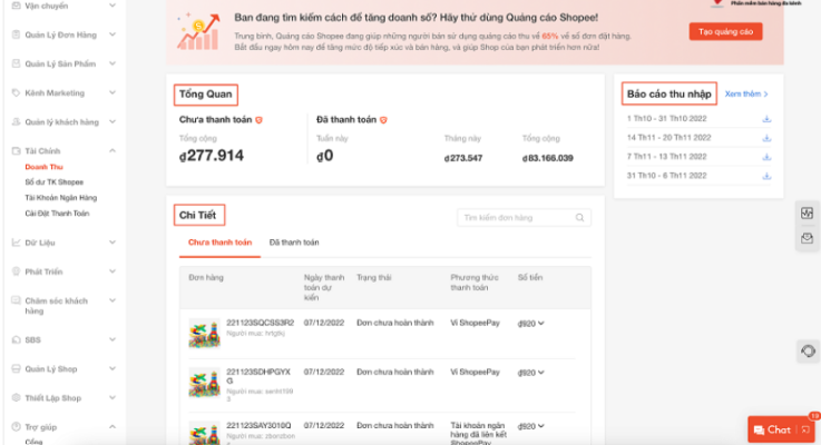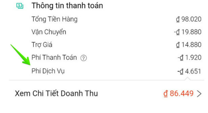 Người bán có thể kiểm tra phí thanh toán bằng cách truy cập vào Kênh Người Bán và tải “Báo cáo thu nhập” để xem tổng số phí giao dịch của mỗi đơn hàng. Hoặc có thể kiểm tra trên ứng dụng bằng cách vào mục “Tôi” và chọn “Shop của tôi” -> “Đơn hàng” -> “Thông tin đơn hàng” -> “Thông tin thanh toán” -> “Phí thanh toán”.