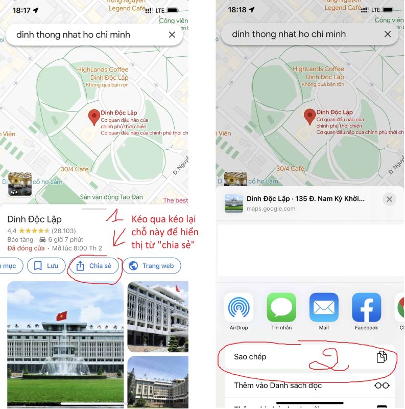 Mở Google Map, sau đó bạn truy cập vào vị trí cần lấy link chia sẻ, nhấn chọn “Chia sẻ” và chọn “Sao chép”.